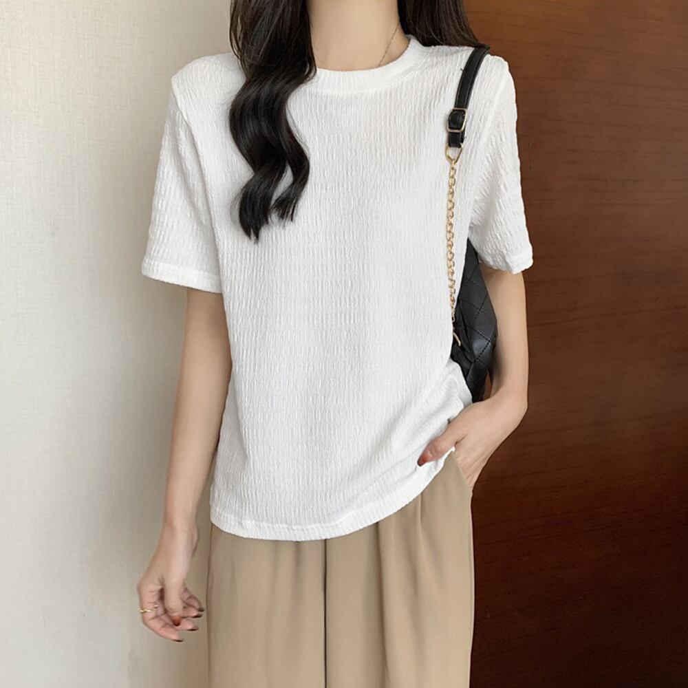 韓国ファッション 半袖 トップス 大人カジュアル シンプル Tシャツ 着回し 春夏カットソー ラウンドネック ベーシック