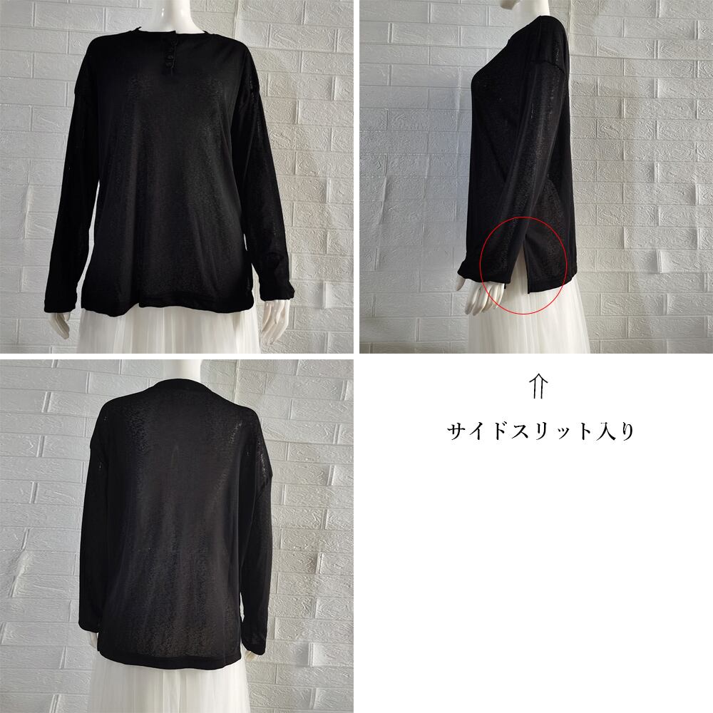 レディース 紫外線対策 ゆったり シアートップス フロントボタン ドロップショルダー透け感 薄手 プルオーバー