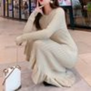 女性らしい印象もありながら、着心地の良いリブニットミモレ丈ワンピース