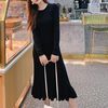 レディース リブニット マーメイドワンピース 韓国 きれいめ 長袖 ロングワンピ フェミニン フィット感 秋冬 暖かい デート女子会可愛い ミモレワンピース黒 タイトワンピース冬