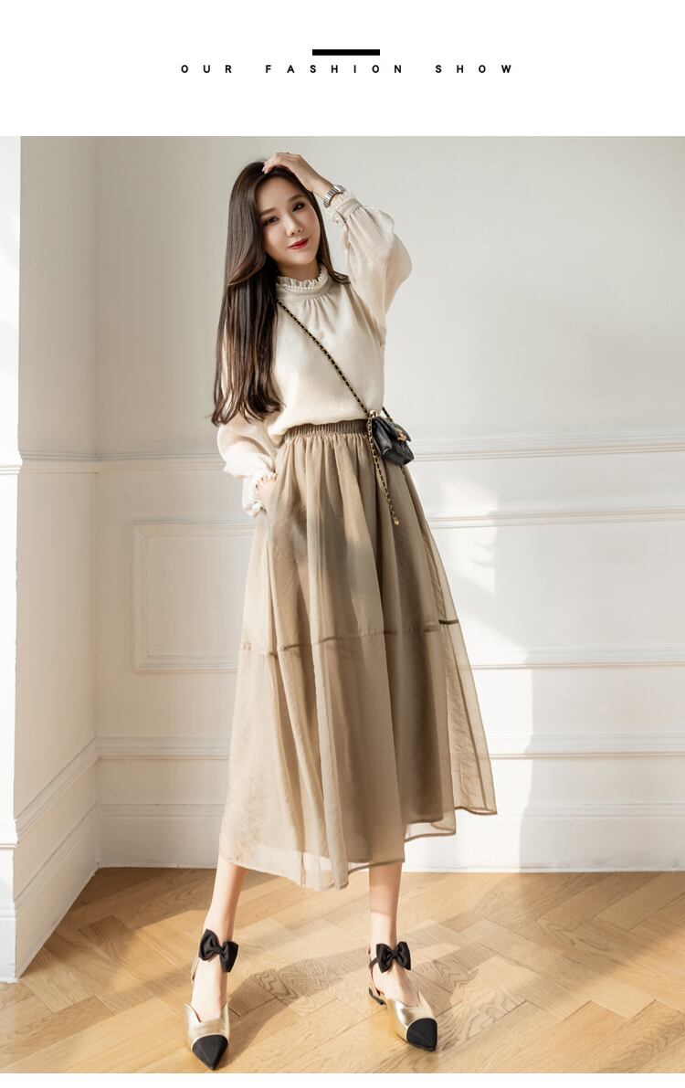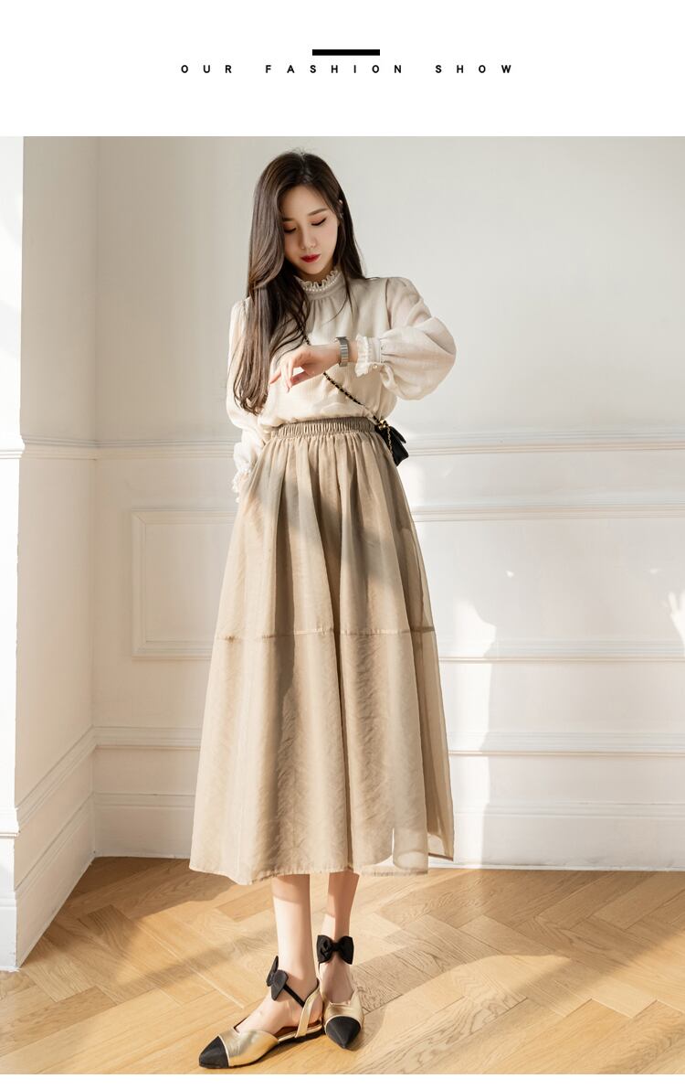 スカート ボトムス 膝丈 ミモレ ミモレ丈 セミフレア Aライン ウエストマーク 切り替えデザイン 透け感 かわいい 大人可愛い きれいめ シンプル カジュアル 大人 上品 おしゃれ お洒落 大人女子 こなれ感 エレガント 無地 春 夏 秋 10代 20代 30代 40代 レディース 女性用 オフィス ビジネス OL 通勤 学生 通学 デート お出かけ 女子会 休日 ホテル 着回し 普段使い スタイル モテ S M L XL 黒 ブラック カーキ くすみカラー 大人カラー ニュアンスカラー