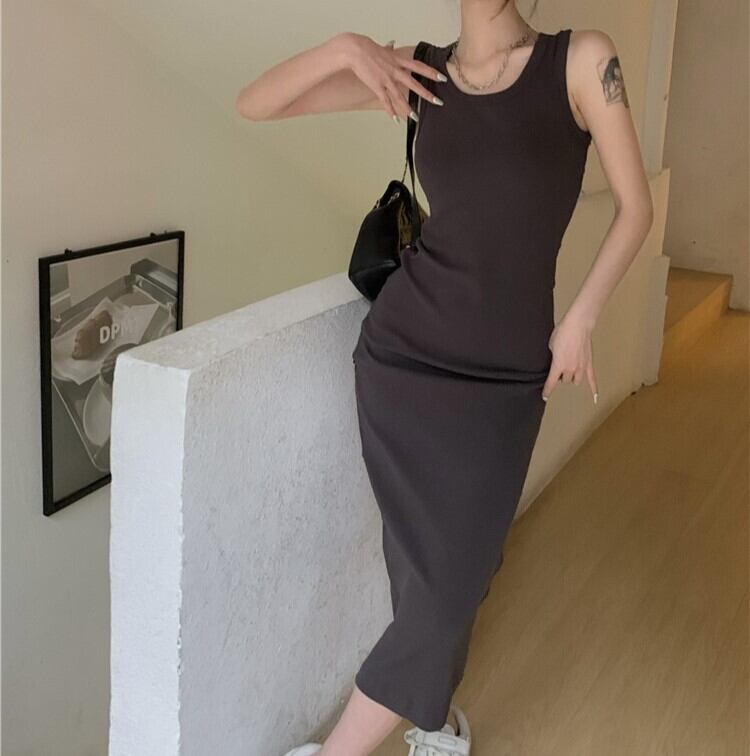 ワンピース ワンピドレス 膝下 ミモレ ミモレ丈 袖なし ノースリーブ Uネック 襟なし スリム タイト 細身 スマート かわいい 大人可愛い きれいめ シンプル カジュアル 大人 おしゃれ お洒落 かっこいい こなれ感 ラフ マニッシュ ラブリー キュート 無地 春 夏 秋 10代 20代 30代 レディース 女性用 女の子 OL 学生 通学 デート お出かけ 公園デビュー 女子会 お泊まり 休日 運動 アウトドア 高原 フリーサイズ 青 ブルー 緑 グリーン 灰色 グレー
