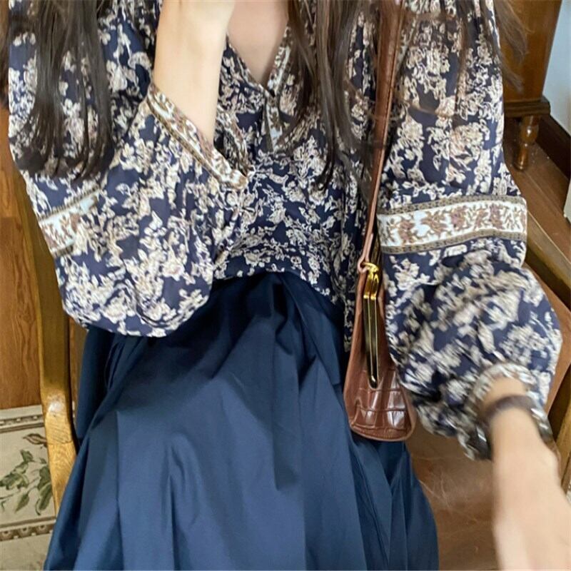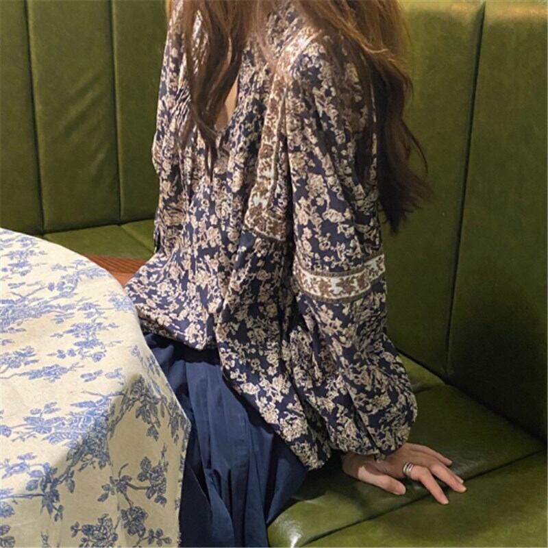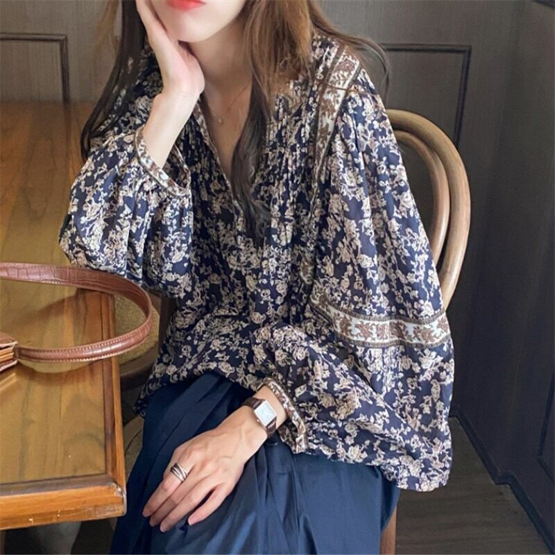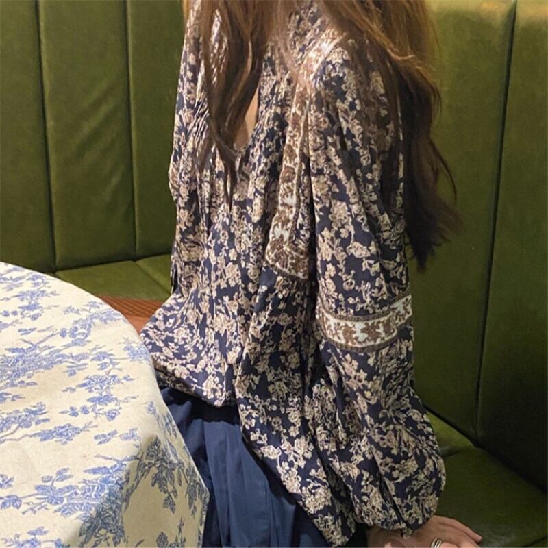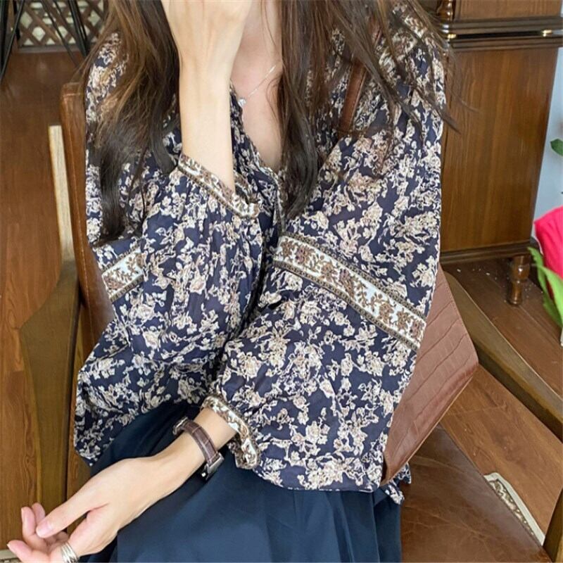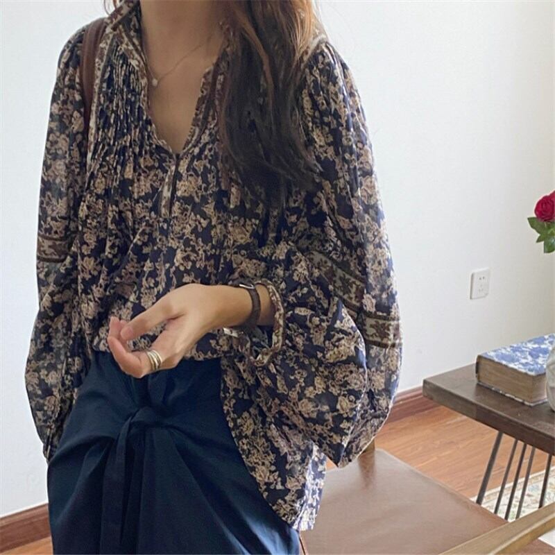 トップス シャツ ブラウス 袖あり 長袖 ランタンスリープ Vネック ストレート シフォン ワイルド 薄手 かわいい 大人可愛い カジュアル 大人 おしゃれ お洒落 レトロ アジアン 大人女子 こなれ感 ラフ 個性的 涼しい 柄 花柄 小花柄 フラワー プリント 春 夏 秋 10代 20代 30代 40 レディース 女性用 ママ デート お出かけ 女子会 お泊まり 休日 アウトドア イベント 旅行 海 プール ホテル ガーデン レストラン ショッピング 普段使い ファッション 楽ちん プレゼント ギフト