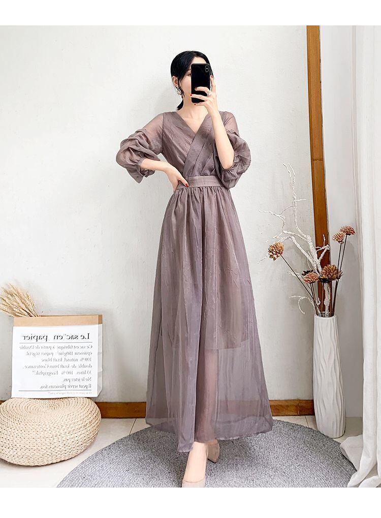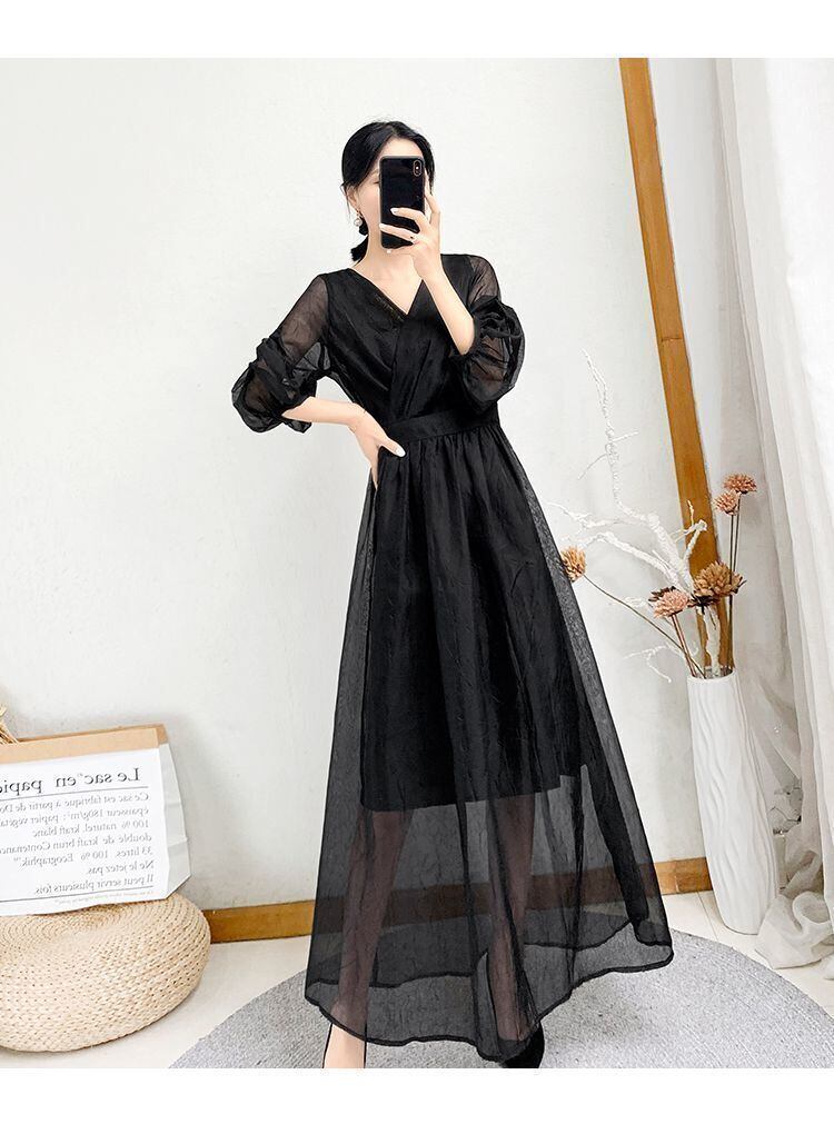 ドレス 二次会ドレス ロングドレス Aラインドレス ワンピドレス カジュアルドレス ロング ロング丈 袖あり 半袖 ボリューム袖 Vネック Aライン 透け感 シースルー エレガント 大人可愛い きれいめ シンプル カジュアル 大人 上品 おしゃれ お洒落 レトロ 無地 30代 レディース 女性用 パーティー イベント ホテル レストラン ファッション コーデ スタイル 春 夏 二次会 2次会 パーティー パーティ サイズ S M L XL 2XL 3XL 黒 ブラック 緑 グリーン 紫 パープル