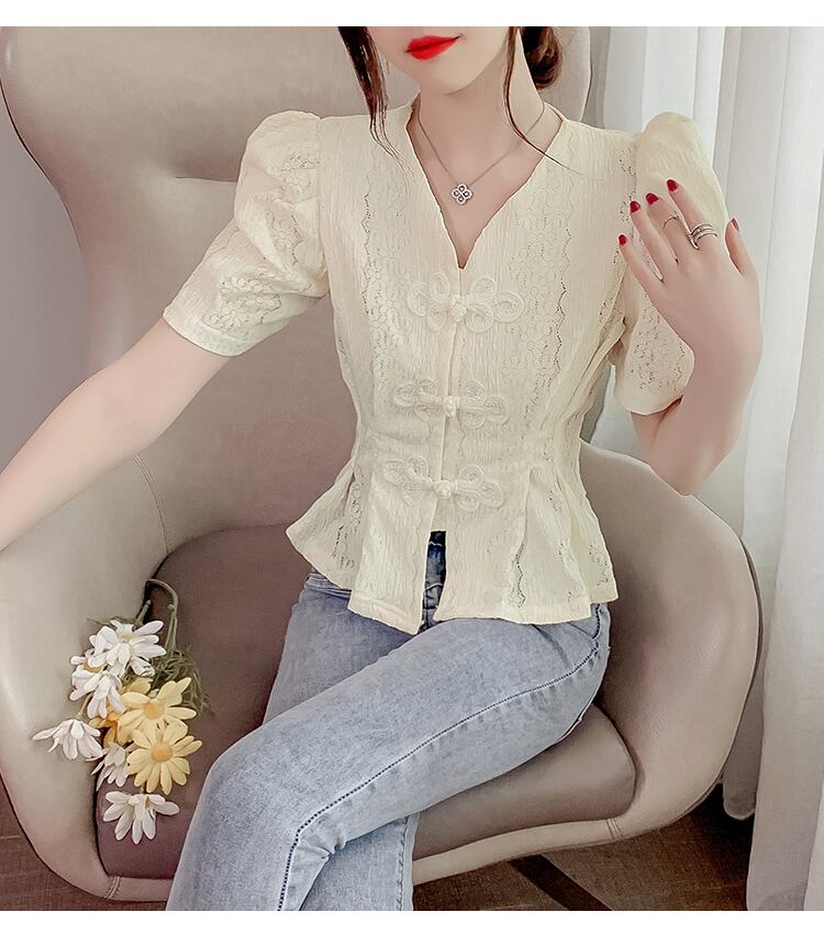 トップス シャツ ブラウス カットソー 白トップス 袖あり ボリューム袖 パフスリーブ Vネック スリム タイト かわいい 大人可愛い きれいめ 大人 上品 おしゃれ お洒落 アジアン エキゾチック 大人女子 ラブリー キュート 個性的 春 夏 秋 10代 20代 レディース 女性用 通勤 学生 通学 デート お出かけ 公園デビュー 女子会 お泊まり 休日 パーティー イベント リゾート 旅行 着回し モテ S M L XL 白 ホワイト 大人カラー アプリコット