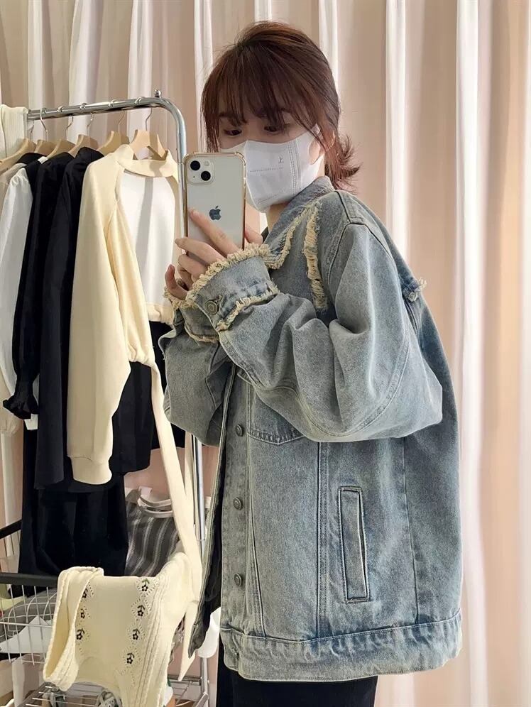 アウター ジャケット ブルゾン Gジャン オーバーサイズ ミディアム丈 ミドル丈 長袖 ボリューム袖 襟付き ルーズ ワイド ポケット 前開き デニム かわいい シンプル カジュアル おしゃれ お洒落 かっこいい ラフ メンズライク ボーイッシュ クール 無地 柄 春 秋 冬 10代 20代 30代 40代 レディース 学生 通学 デート お出かけ 休日 旅行 ショッピング 着回し 普段使い ダメージ 穴あき S M L XL 2XL 3XL 4XL 5XL 大きいサイズ 大きめ ゆったり ゆる ブルー