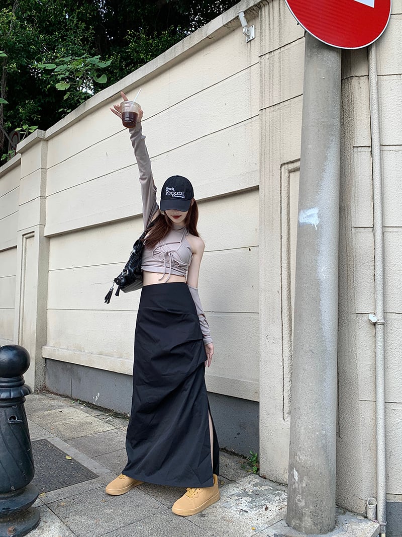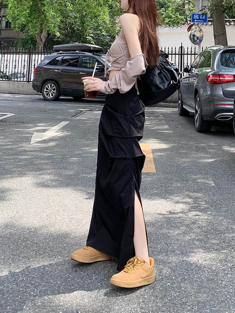 サイドスリットが特徴のロングスカート。大人女子なカジュアルさのある雰囲気が夏のコーデに選びたくなるボトムス。