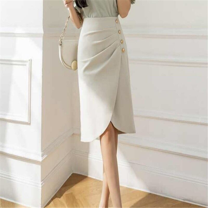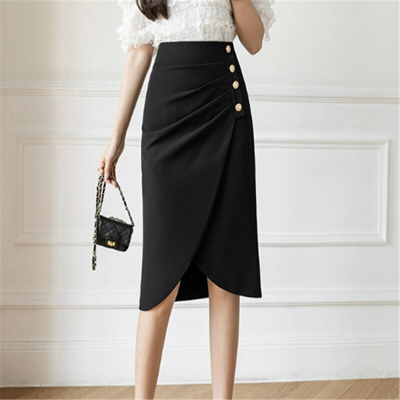 バックヒップスカートは、ハイウエストでウエストラインを強調し、
