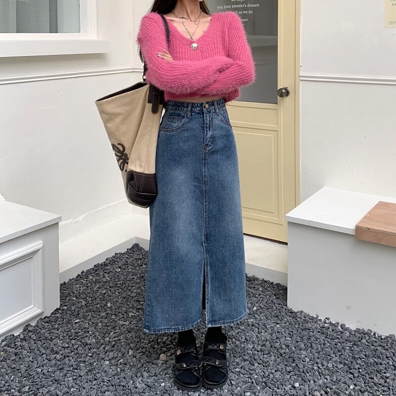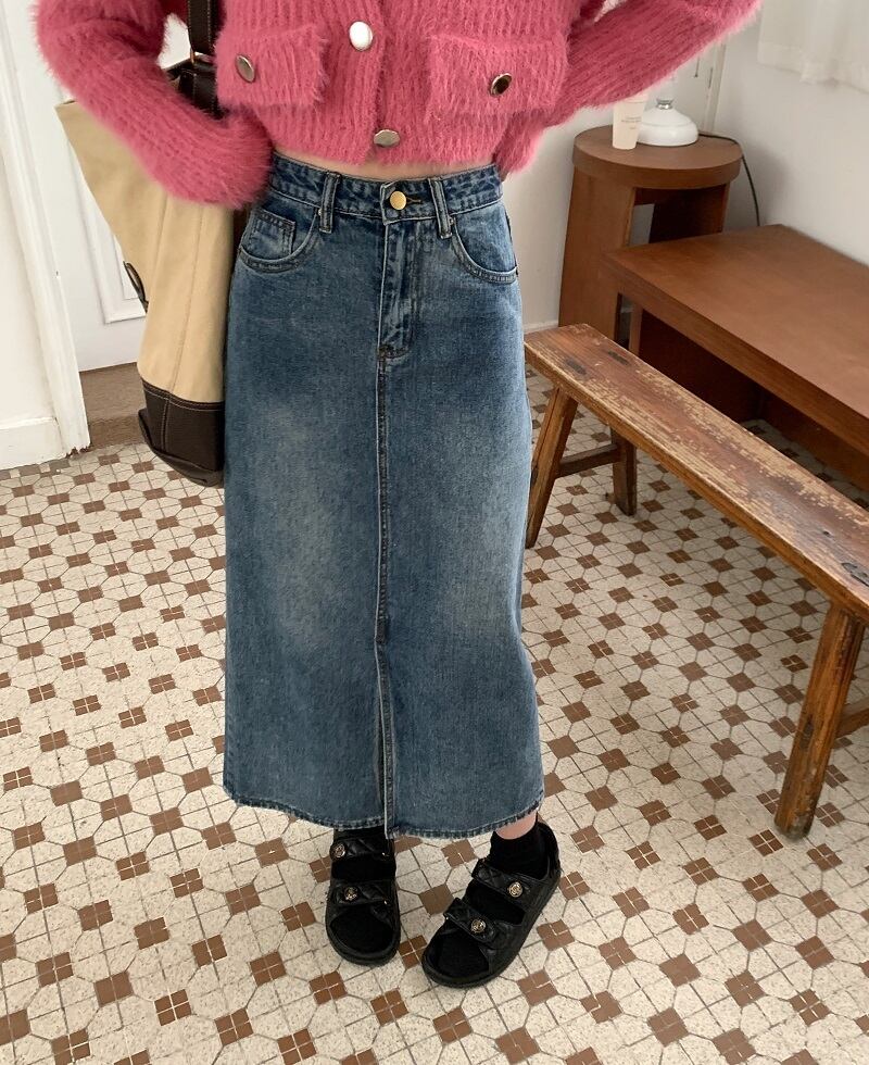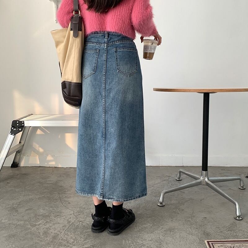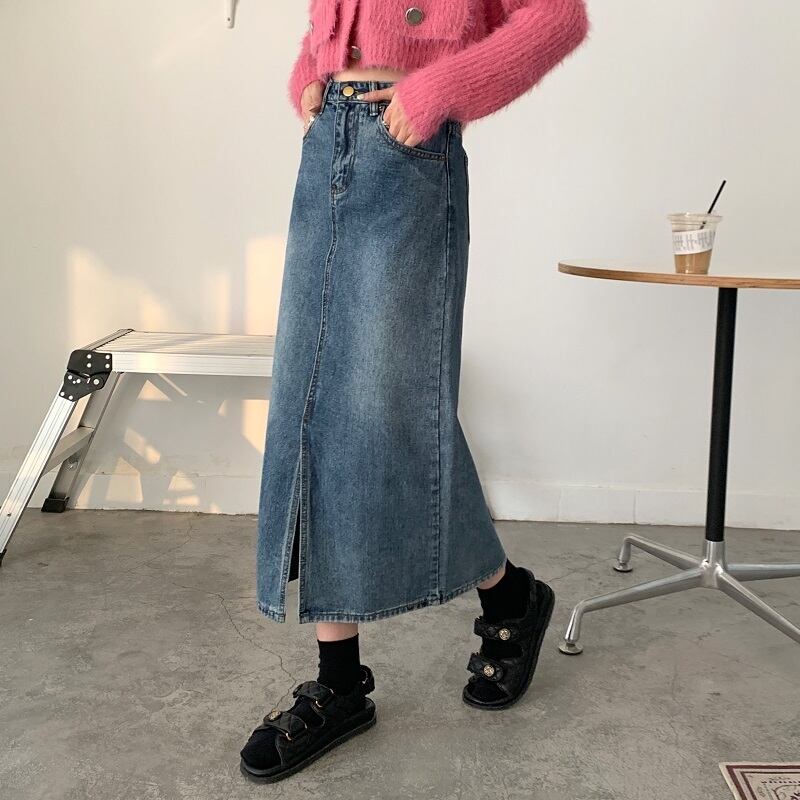 ワードスカート スカート ボトムス デニムスカート ミモレ ミモレ丈 スリム タイト ストレート Aライン スリット ハイウエスト 大人可愛い カジュアル おしゃれ お洒落 レトロ 無地 春 レディース 女性用 デート お出かけ 女子会 お泊まり 休日 イベント 普段使い ファッション コーデ スタイル サイズ M L XL 2XL 3XL 4XL ゆったり 青 ブルー