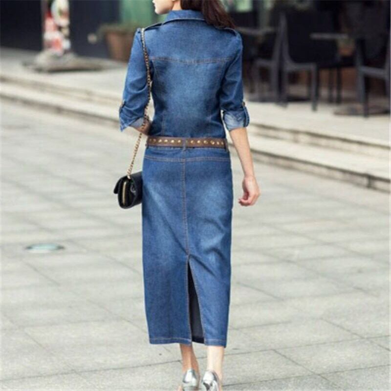 ワンピース ミドルスカート デニムワンピース 膝下 ロング ロング丈 袖あり 長袖 襟付き スリム ボタン デニム かわいい 大人可愛い きれいめ シンプル カジュアル 大人 おしゃれ かっこいい 大人女子 こなれ感 スポーティー 個性的 主役級 無地 春 秋 10代 20代 30代 レディース 女性用 ママ 女の子 通学 デート お出かけ 女子会 休日 アウトドア イベント 旅行 ショッピング 着回し 普段使い 韓国 韓国系 オルチャン ファッション コーデ 楽ちん S M L XL 2XL 3XL