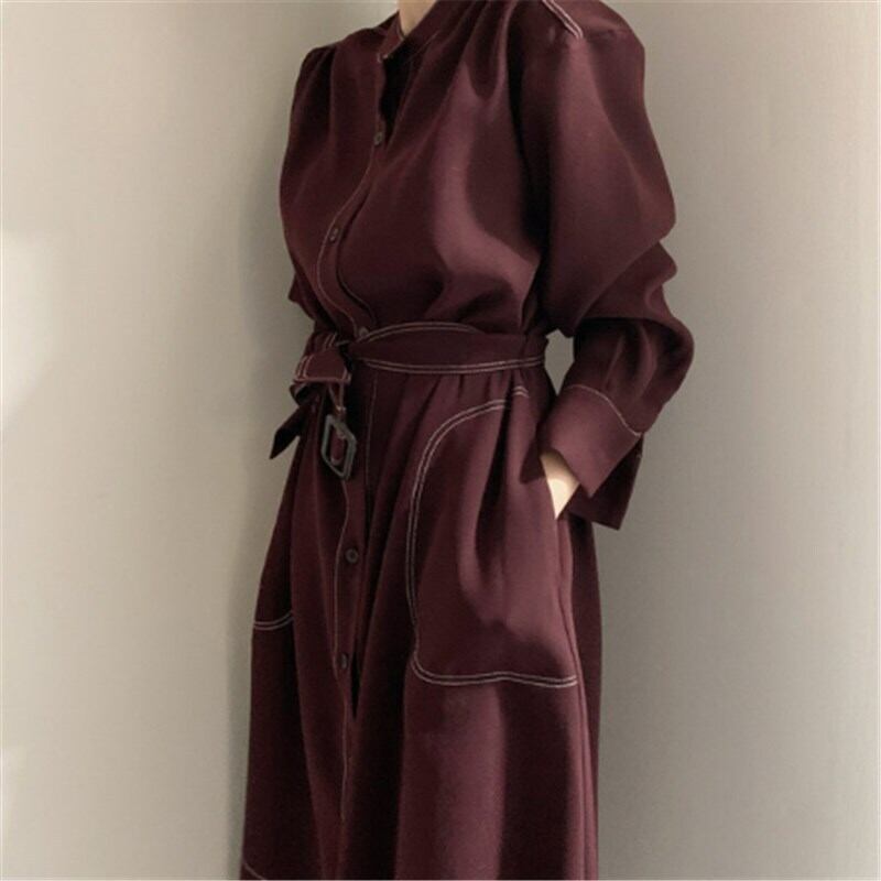 ワンピース 上着 ロングスカート ロング ロング丈 袖あり 長袖 スタンドカラー ウエストリボン ハイウエスト 前開き 羽織 かわいい 大人可愛い シンプル カジュアル 大人 上品 おしゃれ かっこいい 大人女子 こなれ感 ラブリー キュート ガーリー クール セクシー 甘い 無地 春 秋 10代 20代 30代 レディース 女性用 ママ 通勤 デート お出かけ 女子会 休日 イベント 旅行 ショッピング 着回し 普段使い 重ね着 お揃い 双子 韓国 韓国系 オルチャン ファッション スタイル 楽ちん