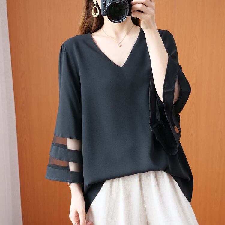 トランペットスリーブ 9分袖 トップス Tシャツ シャツ プルオーバー Vネック ストレート 大人可愛い きれいめ シンプル 大人 おしゃれ お洒落 エキゾチック 大人女子 ラフ ルーズ 個性的 無地 夏 レディース 女性用 デート お出かけ 女子会 お泊まり 休日 イベント リゾート 旅行 海 プール 普段使い ファッション コーデ スタイル サイズ L XL ゆったり ゆる 白 ホワイト