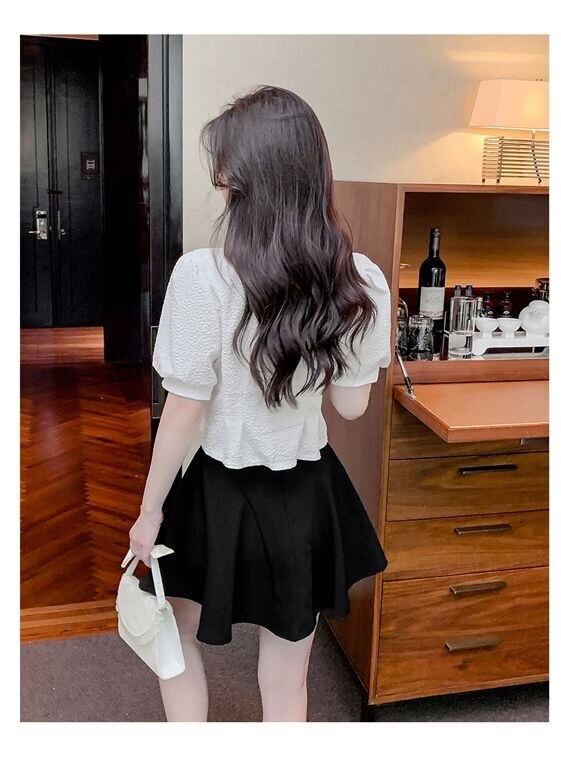 短め丈でウエストラインにさり気ないアクセントが加わり、スタイルをより魅力的に見せます。
