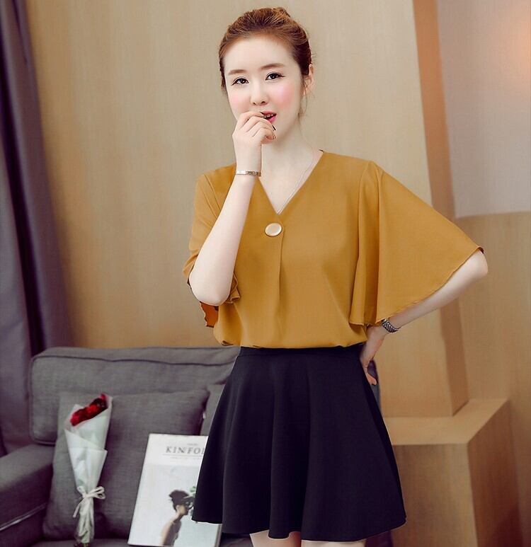 トップス ブラウス 袖あり 半袖 5分袖 五分袖 ボリューム袖 フレアスリーブ Vネック かわいい 大人可愛い きれいめ シンプル カジュアル 大人 上品 おしゃれ お洒落 エレガント 無地 春 夏 10代 20代 30代 40代 50代 レディース 女性用 女の子 オフィス ビジネス OL 通勤 学生 通学 デート お出かけ 女子会 リゾート 旅行 ホテル 着回し 普段使い M L XL 2XL 白 ホワイト 赤 レッド 緑 グリーン 黄色 イエロー ピンク カラバリ