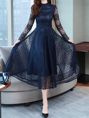 ドレス パーティードレス ミモレ丈ドレス 膝丈ドレス 膝丈 ひざ丈 膝下 ミモレ ミモレ丈 袖あり 7分袖 七分袖 長袖 Aライン タイト スリム レース 透け感 シースルー 大人可愛い きれいめ 上品 おしゃれ お洒落 個性的 クール 主役級 存在感 抜け感 お姫様 お嬢様 柄 10代 20代 レディース 女性用 デート お出かけ パーティー 韓国系 春 夏 秋 お呼ばれ サイズ M L XL 2XL 黒 ブラック くすみカラー モノトーン ダークブルー 紺色