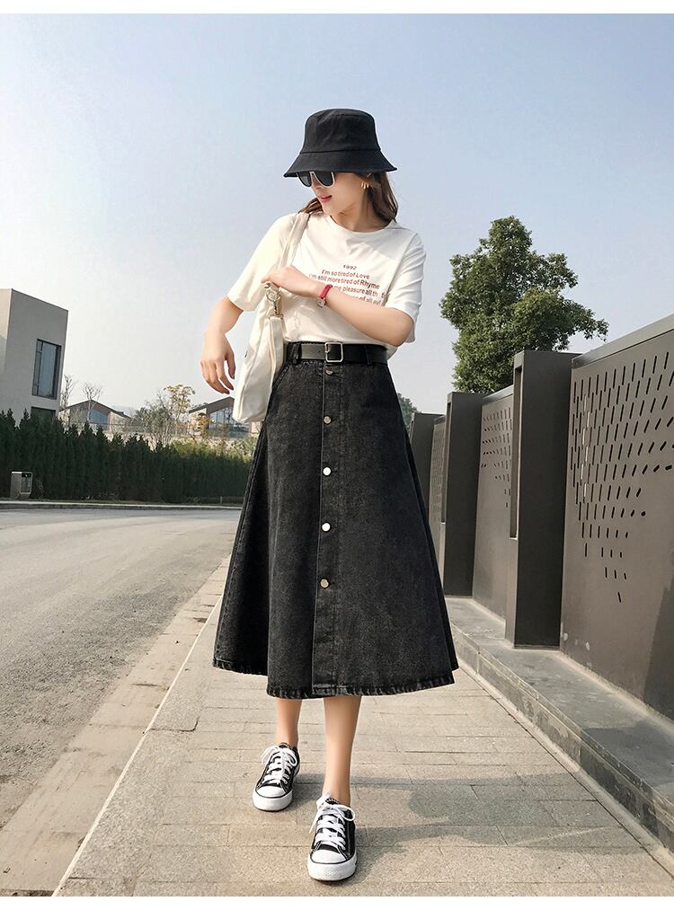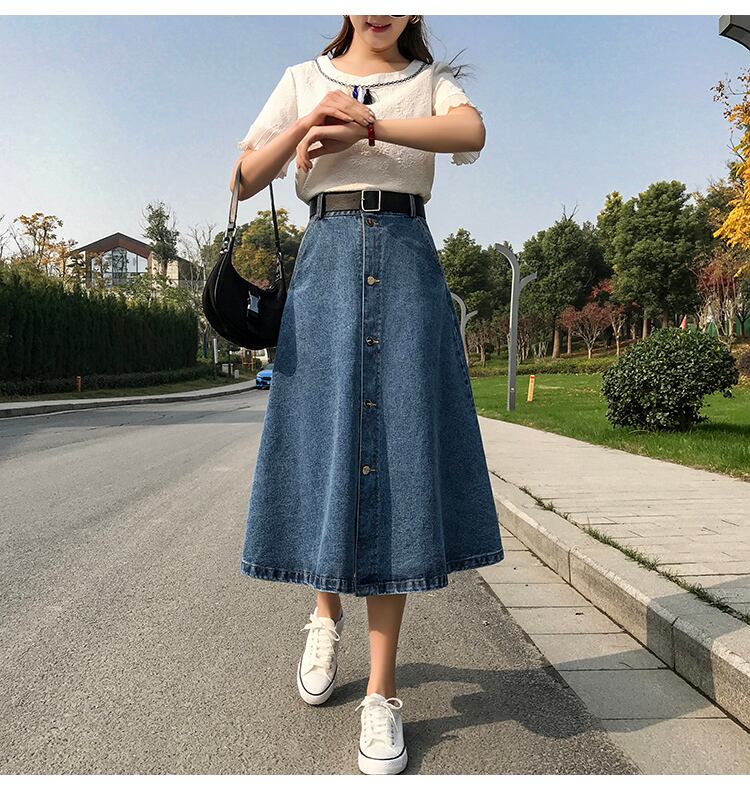 スカート ボトムス デニムスカート ミモレ ミモレ丈 ストレート Aライン ハイウエスト 大人可愛い シンプル カジュアル おしゃれ お洒落 かっこいい レトロ 大人女子 クール 無地 春 夏 10代 20代 レディース 女性用 デート お出かけ 女子会 お泊まり 休日 イベント 普段使い ファッション コーデ スタイル 定番 サイズ S M L XL 2XL 黒 ブラック ネイビー ライトブルー