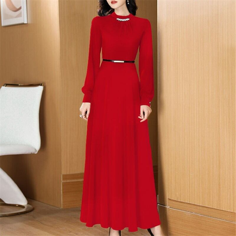 ドレス Aラインドレス 膝下 ロング ロング丈 袖あり 長袖 ラウンドネック Aライン ベルト かわいい 大人可愛い きれいめ シンプル 大人 上品 おしゃれ お洒落 かっこいい 大人可愛い 大人女子 個性的 セクシー エレガント 上品 清楚 無地 20代 30代 40代 レディース 女性用 デート 女子会 パーティー イベント レストラン 韓国 韓国系 オルチャン ファッション コーデ スタイル 春 秋 二次会 2次会 1.5次会 お呼ばれ S M L XL 2XL