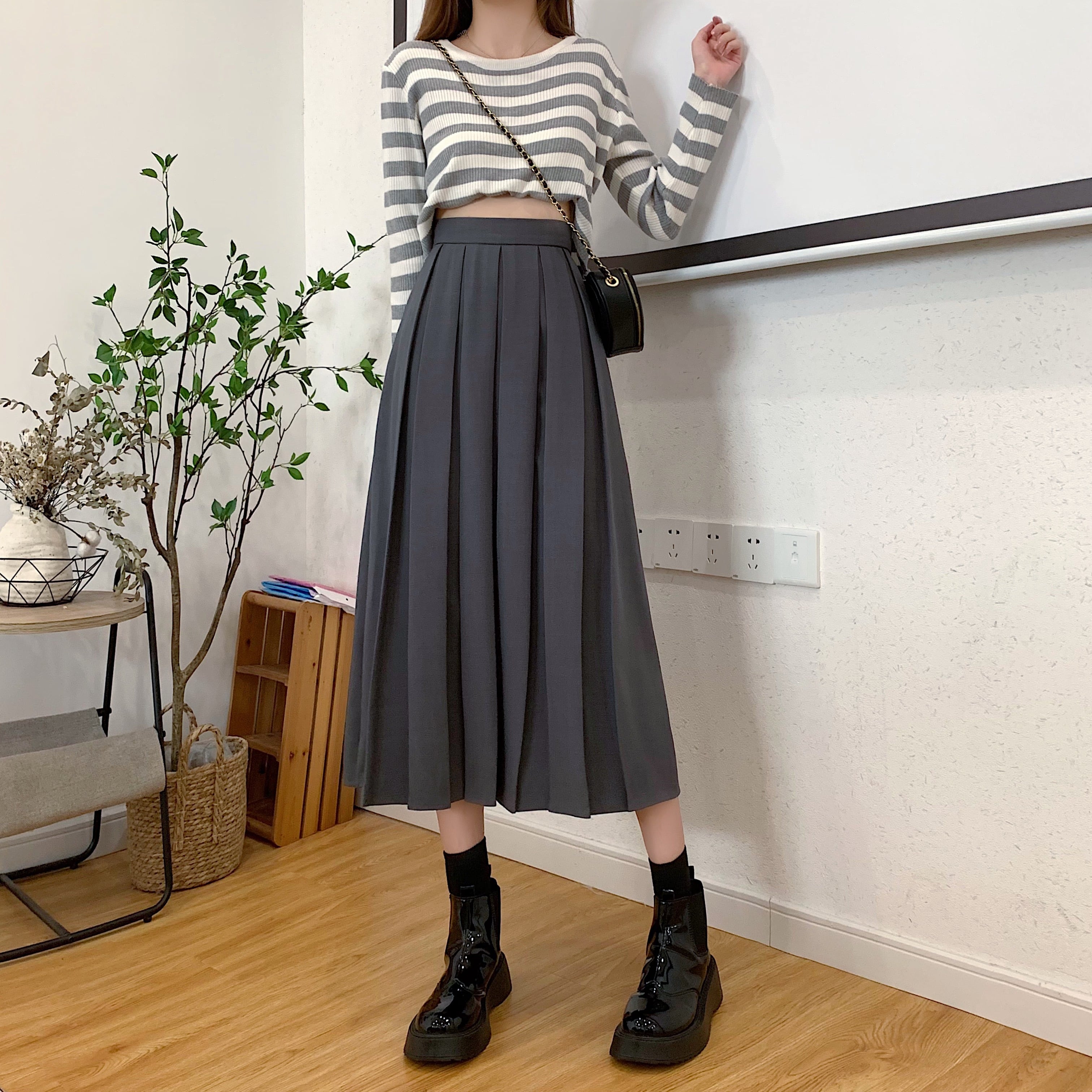 スカート ロングスカート プリーツスカート ひざ丈 膝下 ミモレ ミモレ丈 Aライン プリーツ ハイウエスト かわいい 大人可愛い シンプル カジュアル おしゃれ お洒落 大人女子 こなれ感 ラフ キュート 抜け感 ゆったり 無地 春 夏 秋 10代 20代 30代 レディース 女性用 学生 通学 デート お出かけ 女子会 休日 旅行 着回し 普段使い 体系カバー サイズ S M L XL 色展開 黒 ブラック 茶色 ブラウン 灰色 グレー カーキ パステルカラー くすみカラー 大人カラー