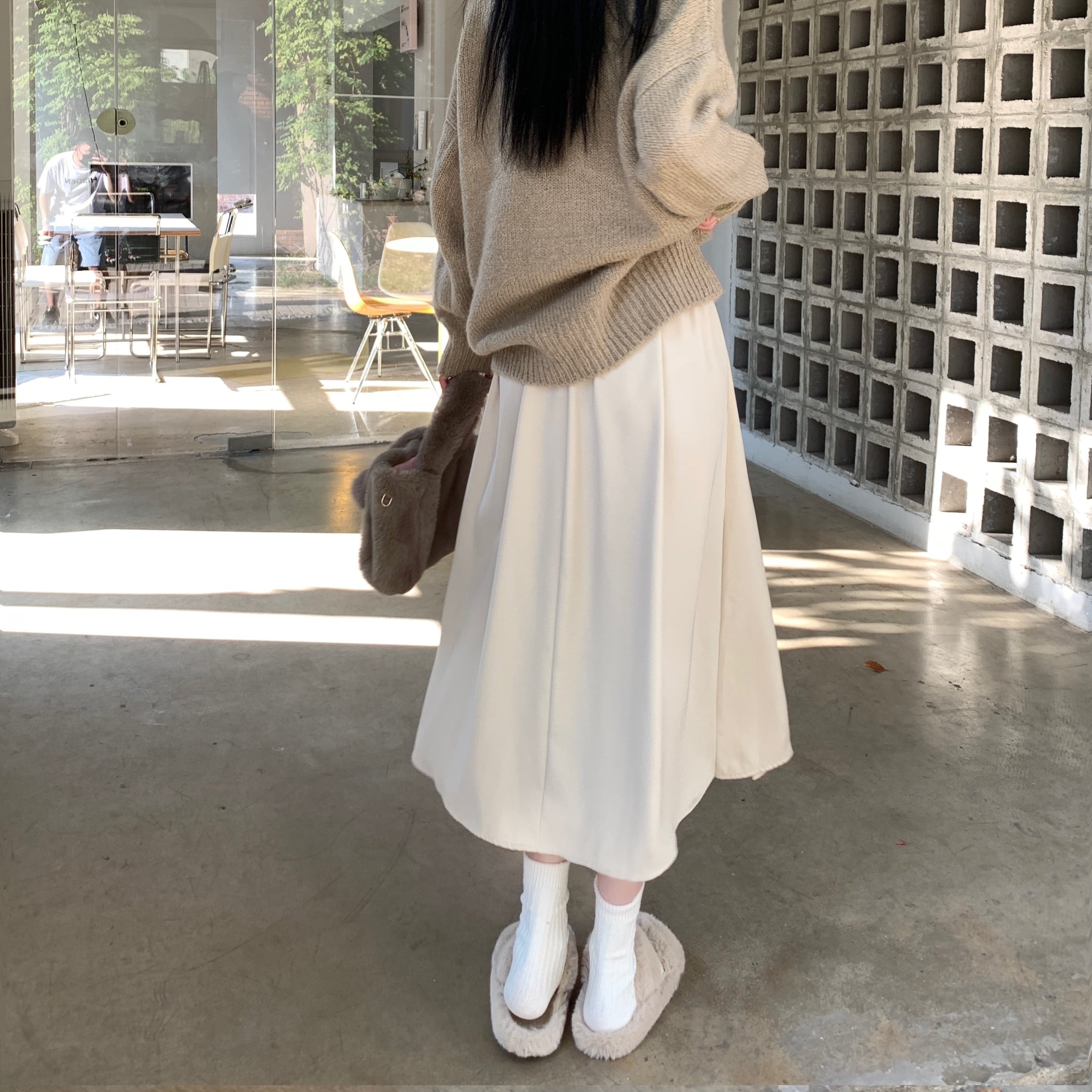 ロング丈で程よいボリューム感があるプリーツスカート。