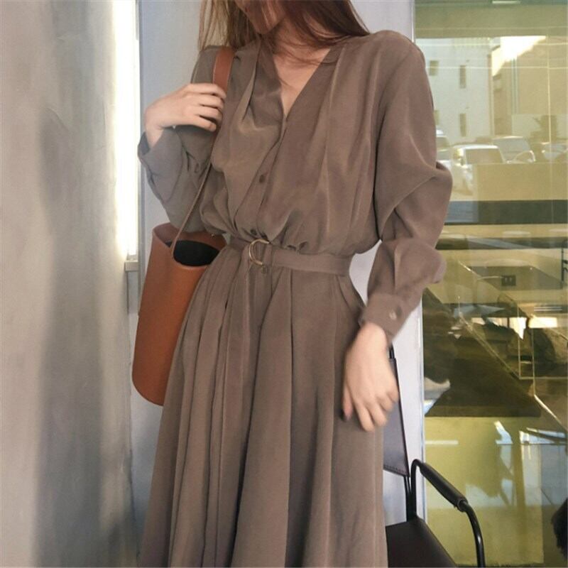 ドレス 膝下 ロング ロング丈 袖あり 長袖 Vネック ゆったりウエスト 大人可愛い きれいめ シンプル 大人 上品 おしゃれ お洒落 かっこいい 大人可愛い 大人女子 個性的 セクシー エレガント エレガント きれいめ ゴージャス 上品 無地 20代 30代 40代 レディース 女性用 デート 女子会 パーティー イベント レストラン 韓国 韓国系 オルチャン ファッション コーデ スタイル 夏 二次会 2次会 1.5次会 お呼ばれ フリーサイズ グレー