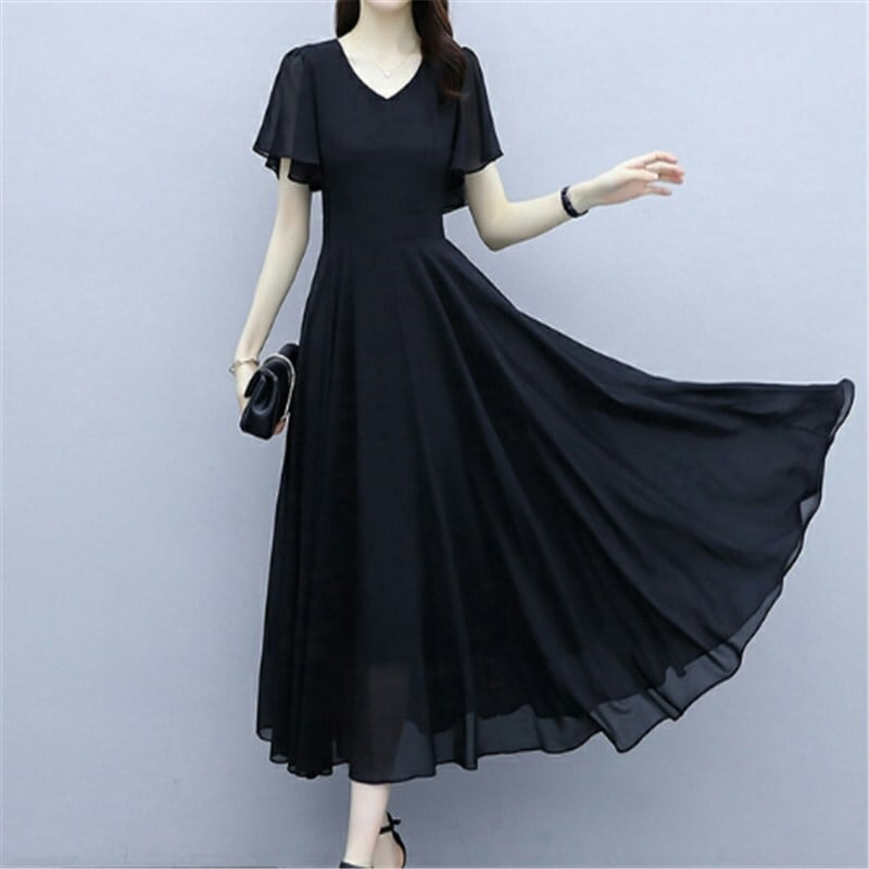 ドレス ロングドレス ロング ロング丈 袖あり 半袖 Vネック Aライン シフォン ハイウエスト かわいい 大人可愛い きれいめ シンプル 大人 上品 おしゃれ お洒落 大人可愛い 大人女子 ラブリー キュート ガーリー セクシー 主役級 エレガント 華やか 上品 お姫様 お嬢様 清楚 20代 30代 40代 レディース 女性用 デート 女子会 パーティー イベント レストラン 韓国 韓国系 オルチャン ファッション コーデ スタイル 美脚 夏 二次会 2次会 1.5次会