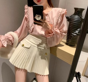 ハイウエストのAラインスカート。プリーツが可愛いショート丈のスカートで、可愛らしさを前面に押し出したコーデにピッタリ。