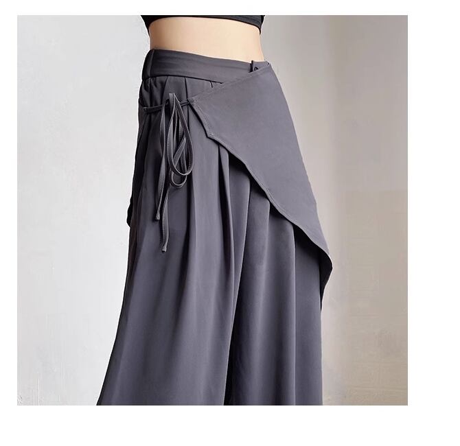 ボトムス パンツ ワイドパンツ モップパンツ セミフレア ストレート ワイド アシンメトリー ポケット ハイウエスト 大人可愛い きれいめ カジュアル おしゃれ お洒落 かっこいい 大人女子 こなれ感 ラフ ルーズ 個性的 クール 存在感 とろみ感 抜け感 ゆったり 無地 春 夏 10代 20代 30代 レディース 女性用 学生 デート お出かけ 休日 旅行 着回し 普段使い 脚長 S M L 灰色 グレー くすみカラー 大人カラー