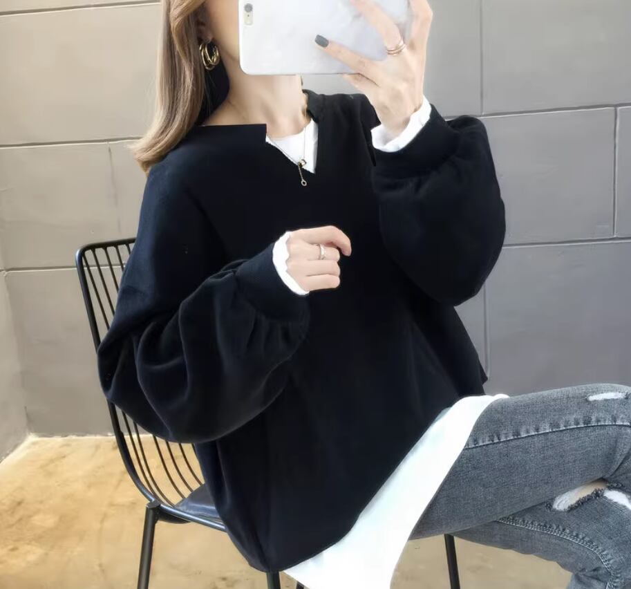シンプルながらもドロップショルダーで大人可愛いトップスです。秋冬に似合う黒とカーキで着回し力も抜群。大きいサイズも用意しているので、体型カバーも◎