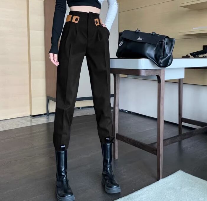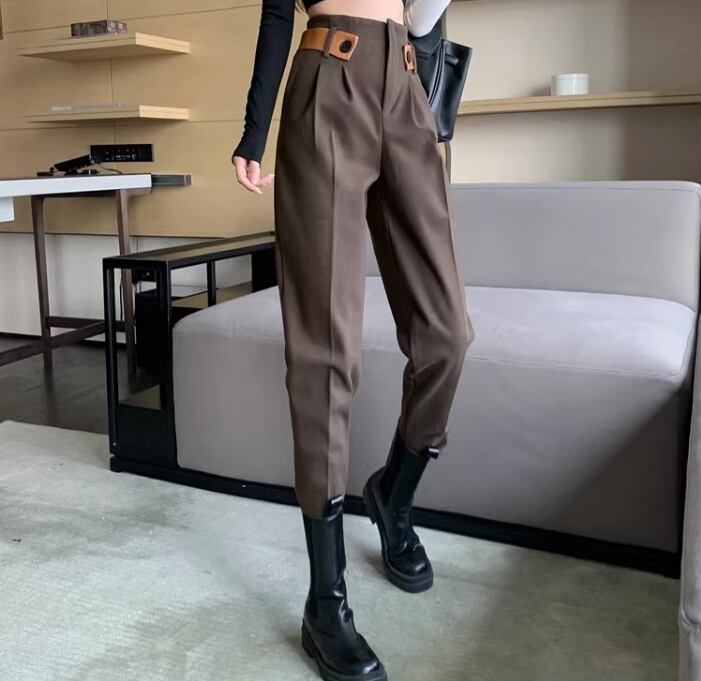 ボトムス パンツ ズボン ストレートパンツ 細身 ストレート ハイウエスト きれいめ シンプル カジュアル おしゃれ お洒落 かっこいい レトロ こなれ感 ラフ マニッシュ ボーイッシュ スポーティー 個性的 クール モダン アメリカン 無地 春 秋 10代 20代 30代 レディース 女性用 学生 通学 デート お出かけ 休日 着回し 普段使い 韓国系 脚長 S M L 黒 ブラック 茶色 ブラウン くすみカラー 大人カラー モノトーン