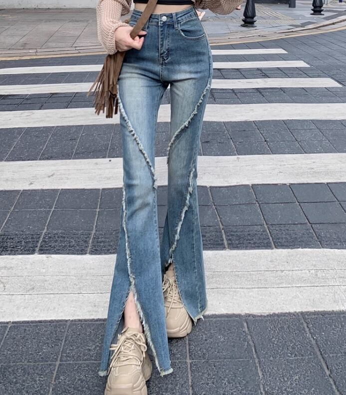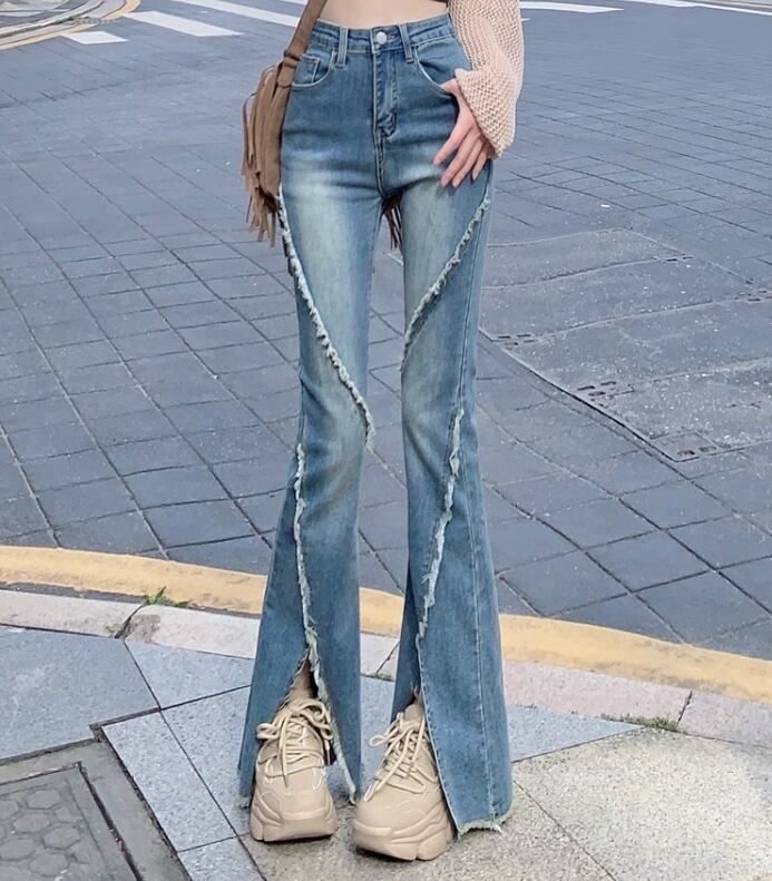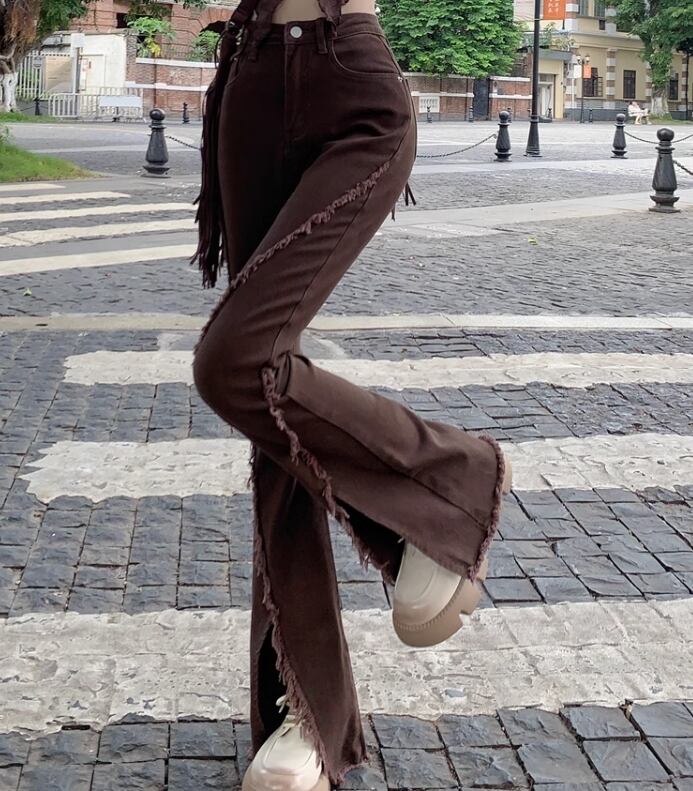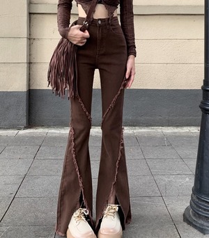 ボトムス パンツ ストレートパンツ タイト 細身 スマート スリット ハイウエスト きれいめ シンプル カジュアル おしゃれ お洒落 かっこいい レトロ 大人可愛い こなれ感 ラフ マニッシュ ボーイッシュ ルーズ 個性的 クール 存在感 ワイルド 無地 春 夏 秋 10代 20代 30代 レディース 女性用 学生 通学 デート お出かけ 休日 着回し 普段使い 韓国系 美脚 脚長 S M L XL 青 ブルー 茶色 ブラウン くすみカラー 大人カラー モノトーン
