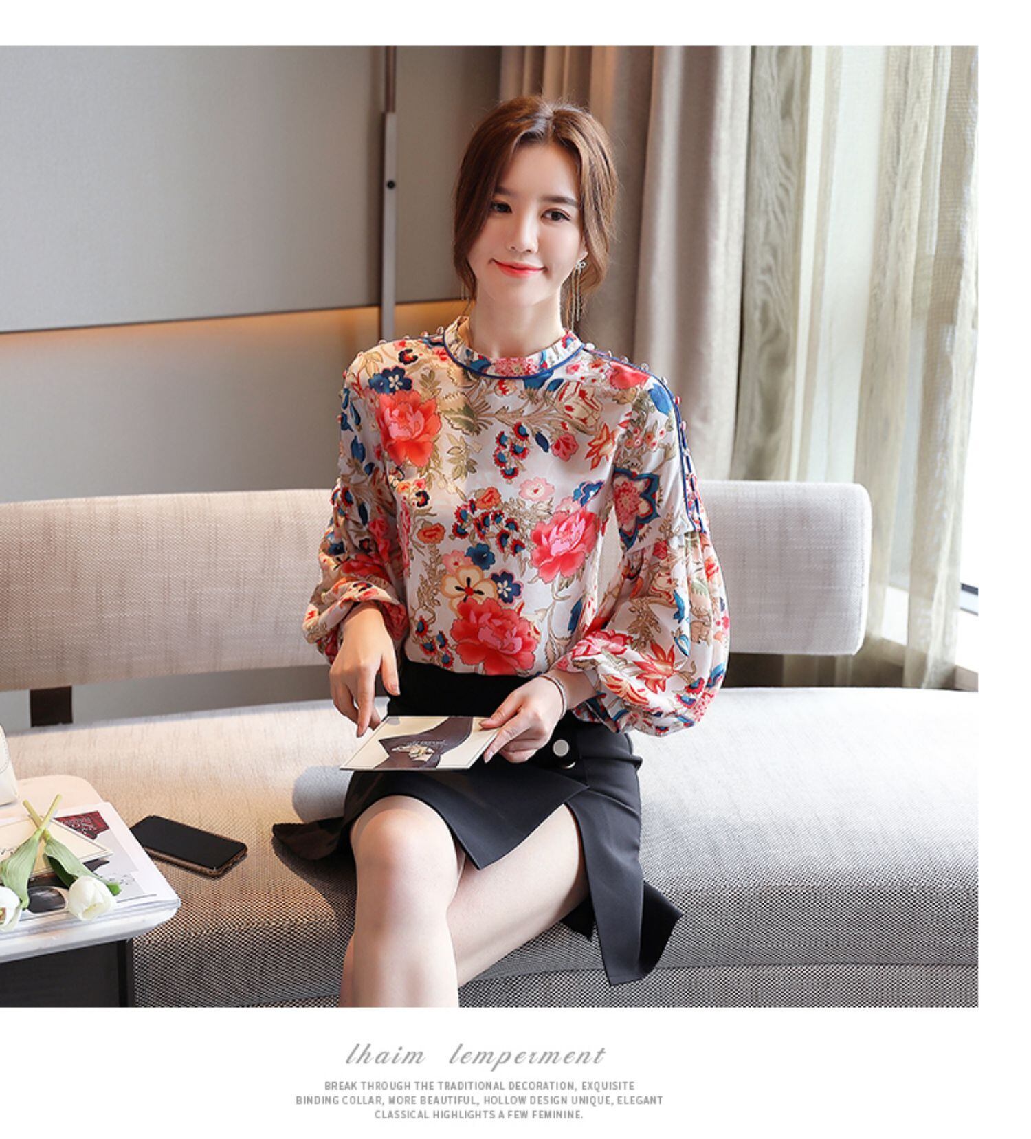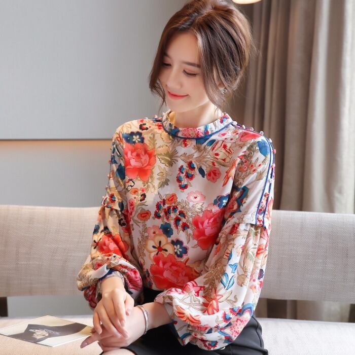 トップス ブラウス プルオーバー ミディアム丈 ミドル丈 レギュラー丈 長袖 ボリューム袖 パフスリーブ ドロップショルダー スタンドカラー ルーズ ワイド 裾イン プリーツ 薄手 かわいい 大人可愛い カジュアル おしゃれ レトロ ラフ キュート ガーリー 柄 花柄 フラワー 春 夏 秋 10代 20代 30代 40代 50代 60代 レディース 学生 通学 デート お出かけ 女子会 休日 旅行 ショッピング 着回し 普段使い 重ね着 楽ちん S M L XL 2XL ゆったり ゆる レッド ブルー