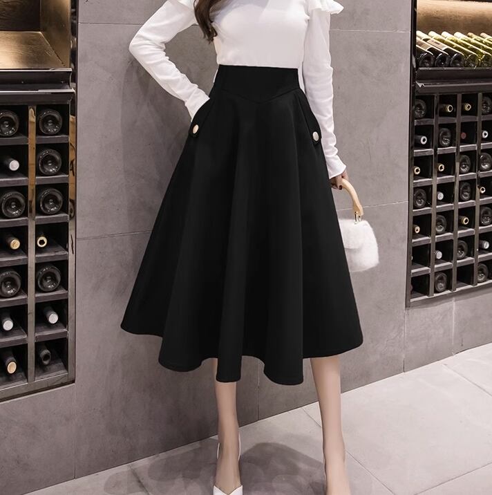 スカート アンブレラスカート 膝丈 ひざ丈 膝下 ミモレ ミモレ丈 フレア Aライン スマート ポケット ハイウエスト ボタン かわいい 大人可愛い きれいめ シンプル カジュアル 上品 おしゃれ お洒落 大人女子 こなれ感 ラフ 個性的 モダン とろみ感 抜け感 ゆったり 無地 春 秋 10代 20代 30代 レディース 女性用 学生 通学 デート お出かけ 女子会 休日 旅行 着回し 普段使い 韓国系 S M L XL 2XL 黒 ブラック ネイビー 大人カラー モノトーン