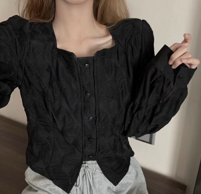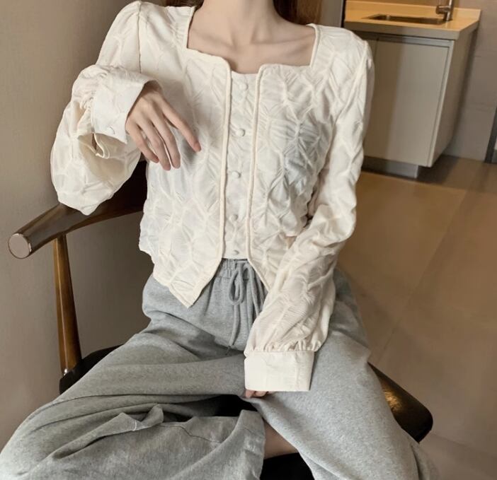 トップス シャツ 袖あり 長袖 スクエアネック 襟なし スリム スマート 透け感 ボタン 鎖骨 かわいい 大人可愛い シンプル 上品 おしゃれ レトロ 大人女子 こなれ感 ラブリー キュート セクシー エレガント モダン とろみ感 抜け感 ゆったり ラグジュアリー フレンチ シック 無地 春 秋 10代 20代 30代 レディース 女性用 学生 デート お出かけ 休日 イベント 旅行 着回し 普段使い 韓国系 体系カバー フリーサイズ 白 ホワイト 黒 ブラック くすみカラー 大人カラー モノトーン 春
