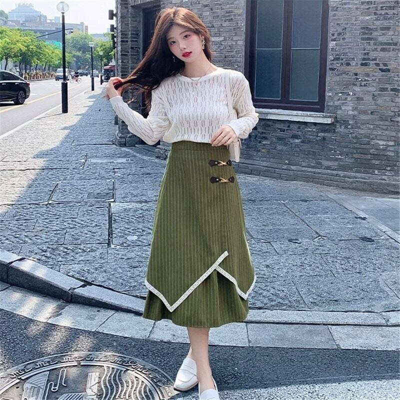 スカート ストライブスカート ミモレ ミモレ丈 Aライン ワードスカート ハイウエスト かわいい 大人可愛い きれいめ シンプル カジュアル 大人 上品 おしゃれ お洒落 かっこいい こなれ感 ラブリー キュート ガーリー クール 主役級 存在感 無地 冬 20代 30代 40代 レディース 女性用 ママ デート お出かけ 女子会 休日 パーティー イベント 旅行 ホテル ショッピング 着回し 普段使い お揃い 双子 韓国 韓国系 オルチャン ファッション コーデ スタイル 暖かい S M L XL 緑