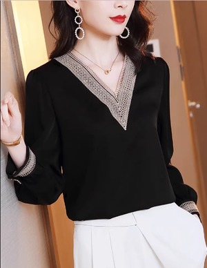 おしゃれな 刺繍Vネック トップス デート シャツ カットソー トップス 袖あり 長袖 ボリューム袖 Vネック 襟なし 刺繍 ステッチ 厚手 きれいめ カジュアル 大人 上品 おしゃれ お洒落 大人女子 こなれ感 セクシー エレガント 抜け感 無地 春 秋 20代 30代 レディース 女性用 オフィス OL デート お出かけ 女子会 レストラン ショッピング ファッション コーデ スタイル モテ 体系カバー サイズ M L XL 2XL 3XL サイズ 色展開 白 ホワイト 黒 ブラック 秋カラー