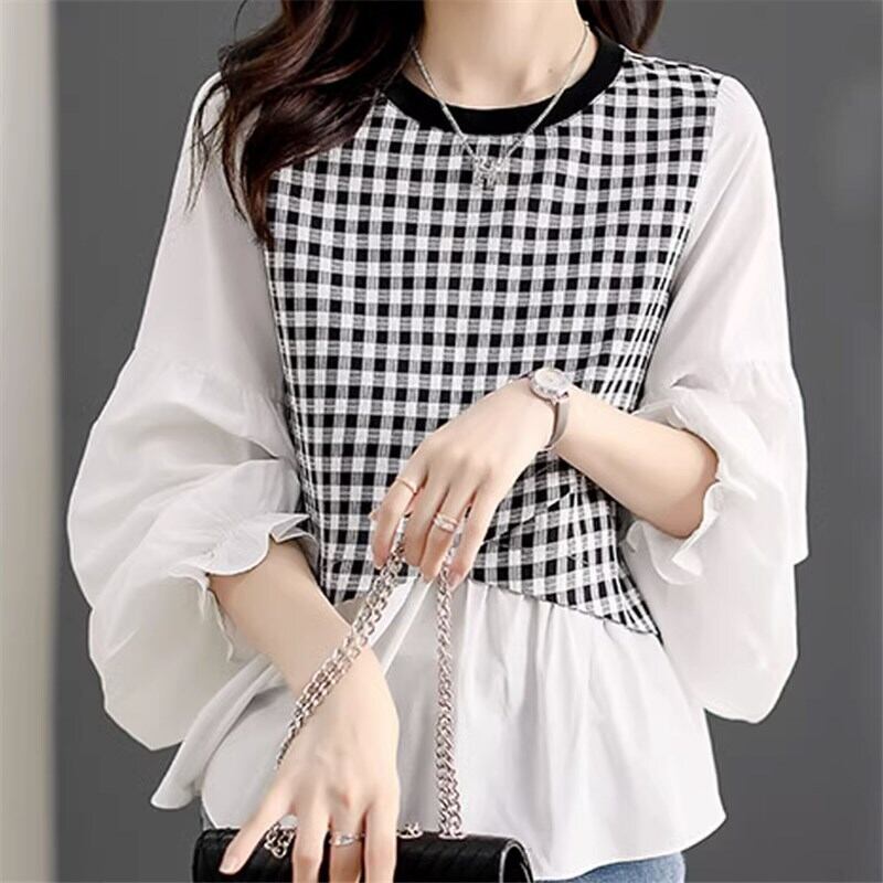トップス シャツ ブラウス 袖あり 長袖 ラウンドネック スリム かわいい 大人可愛い きれいめ シンプル カジュアル 大人 上品 おしゃれ お洒落 かっこいい 大人女子 こなれ感 スポーティー ラブリー キュート ガーリー ルーズ クール セクシー 主役級 存在感 甘い 格子柄 春 秋 参観日 10代 20代 30代 40代 レディース 女性用 ママ 通学 デート お出かけ 女子会 休日 イベント リゾート ホテル ショッピング 着回し 普段使い お揃い 双子 韓国 韓国系 オルチャン ファッション