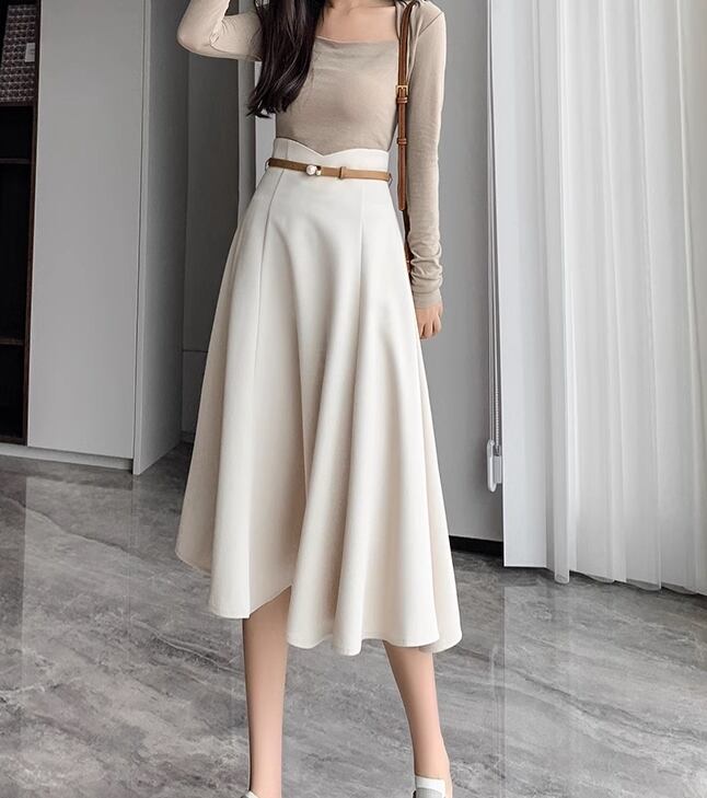 スカート ロングスカート アンブレラスカート ひざ丈 膝下 ミモレ ミモレ丈 フレア Aライン スマート ベルト ハイウエスト かわいい 大人可愛い きれいめ シンプル 大人 上品 おしゃれ お洒落 レトロ 大人女子 こなれ感 個性的 クール エレガント モダン 抜け感 ゆったり ラグジュアリー シック 無地 春 夏 秋 10代 20代 30代 レディース 女性用 学生 デート お出かけ 公園デビュー 女子会 休日 リゾート 旅行 着回し 普段使い 韓国系 美脚 脚長 S M L XL