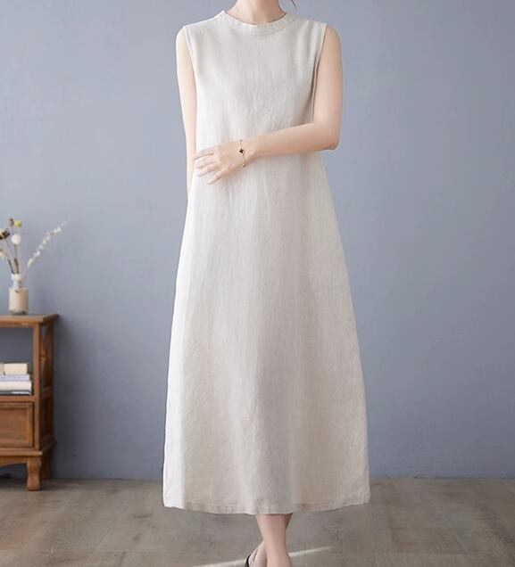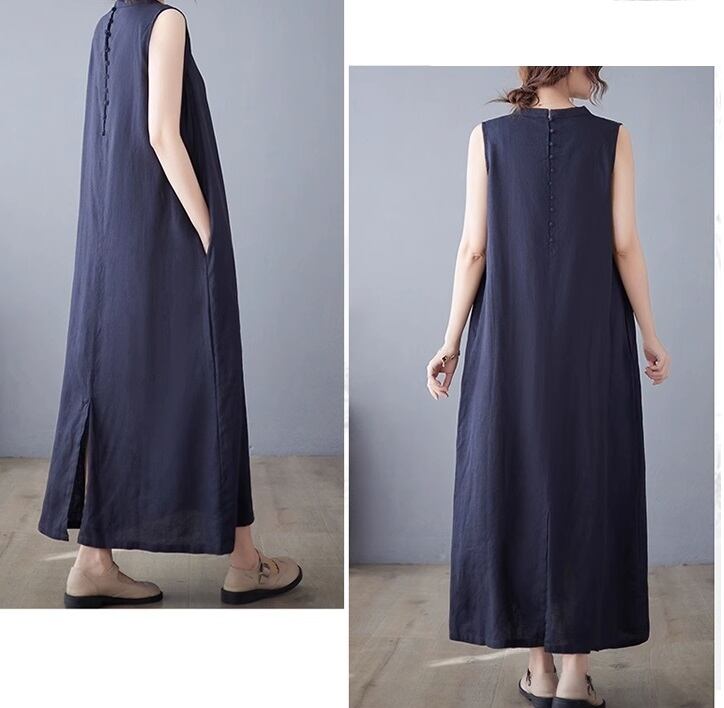 ワンピース ロングスカート ロング ロング丈 袖なし ノースリーブ ラウンドネック Aライン スリット バックスリット ボタン 大人可愛い きれいめ シンプル カジュアル 大人 上品 おしゃれ お洒落 レトロ こなれ感 ルーズ 抜け感 ゆったり 無地 夏 10代 20代 30代 レディース 女性用 学生 デート お出かけ 休日 リゾート 旅行 海 着回し 普段使い 体系カバー M L XL 2XL 白 ホワイト ネイビー くすみカラー 大人カラー