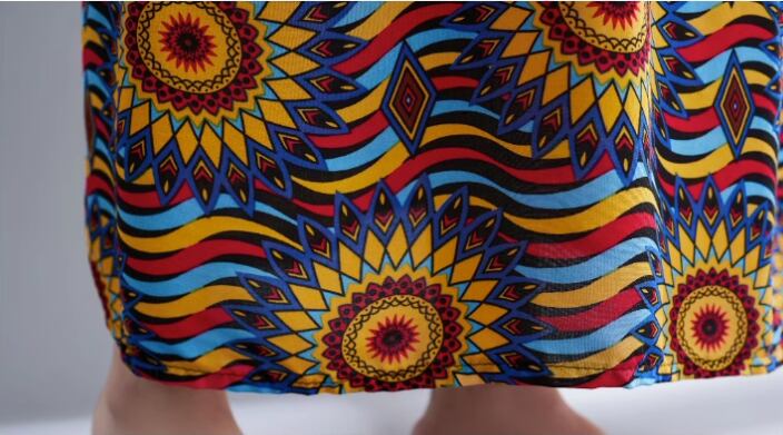 エスニックスタイルなワンピース。レトロなデザインとゆったりした造りがポイントで、夏らしさを押し出したコーデにピッタリ。