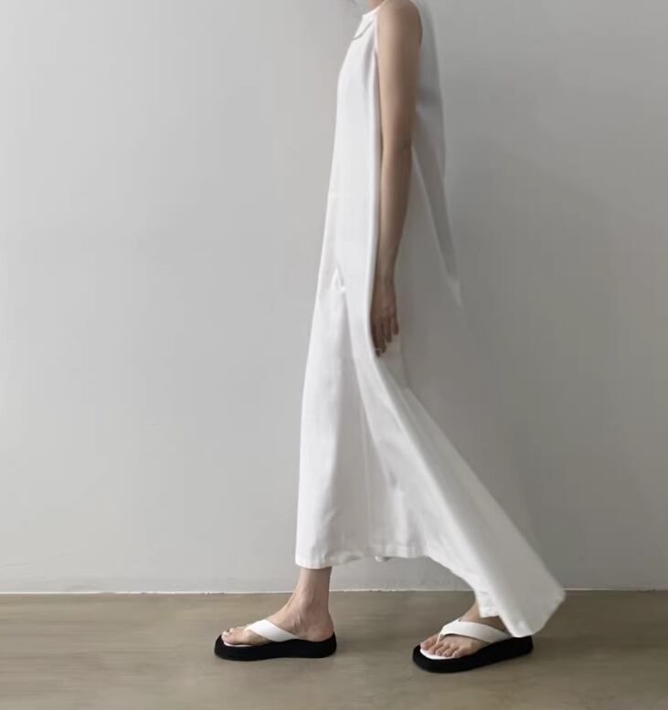ワンピース ロングスカート ロング ロング丈 袖なし ノースリーブ ラウンドネック Aライン ドレープ 大人可愛い きれいめ シンプル 上品 おしゃれ お洒落 大人女子 こなれ感 キュート ルーズ 個性的 モダン 抜け感 ゆったり フレンチ シック 無地 春 夏 10代 20代 30代 レディース 女性用 学生 デート お出かけ お泊まり 休日 着回し 普段使い 重ね着 韓国系 体系カバー フリーサイズ ゆったり 白 ホワイト 黒 ブラック 大人カラー モノトーン