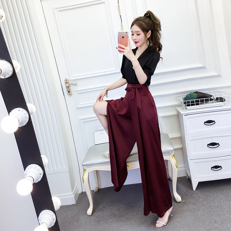 ざっくり入ったスリットがセクシーなワイドパンツ+カシュクールトップスの2点セットです!