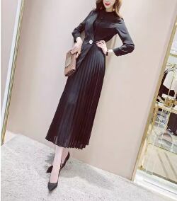 フェイクツーピース ワンピース ワンピドレス ミモレ ミモレ丈 袖あり 長袖 Vネック 襟付き スリム タイト 細身 プリーツ ウエストマーク 切り替えデザイン ハイウエスト ステッチ 薄手 きれいめ カジュアル 大人 上品 おしゃれ お洒落 かっこいい 大人女子 こなれ感 クール 無地 春 秋 20代 30代 レディース 女性用 OL デート お出かけ 女子会 パーティー イベント レストラン ファッション コーデ スタイル モテ 体系カバー 美脚 脚長 サイズ S M L XL 黒 ブラック