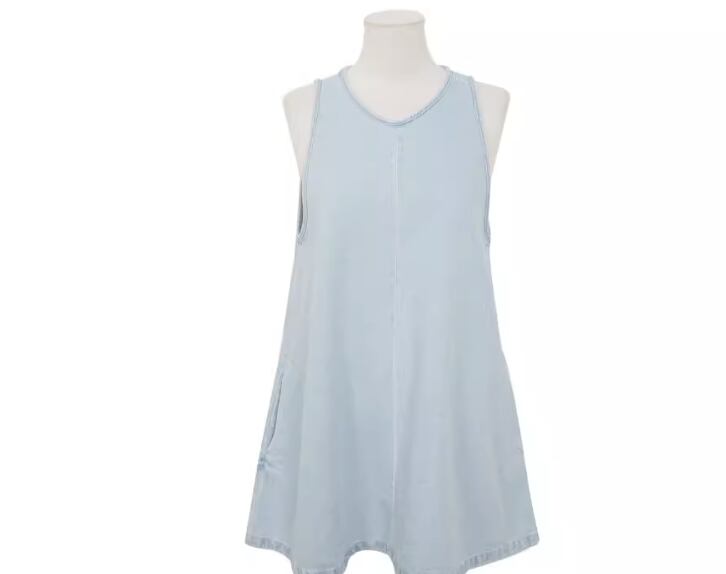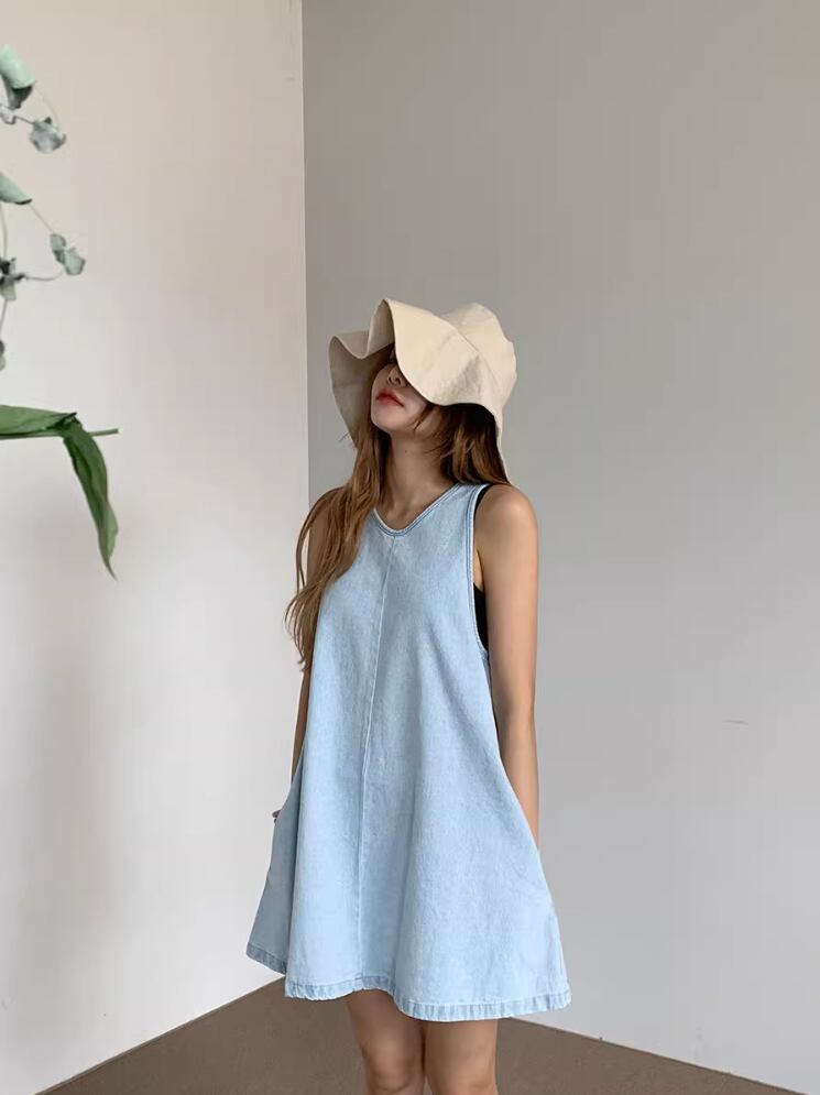 ワンピース ショート ショート丈 袖なし ノースリーブ Vネック ストレート Aライン かわいい シンプル カジュアル おしゃれ お洒落 レトロ ラフ キュート ガーリー ルーズ 無地 夏 10代 20代 レディース 女性用 デート お出かけ 女子会 お泊まり 休日 イベント リゾート 旅行 海 プール 普段使い ファッション コーデ スタイル フリーサイズ 青 ブルー
