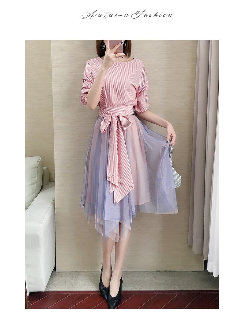 トップス スカート セットアップ デート カットソー プルオーバー トップス プリーツスカート ミモレ ミモレ丈 不規則丈 袖あり 半袖 5分袖 五分袖 ボリューム袖 ラウンドネック 襟なし フレア プリーツ リボン ウエストマーク ハイウエスト 透け感 薄手 メッシュ かわいい 大人可愛い きれいめ おしゃれ お洒落 大人女子 ラブリー キュート ガーリー ストライプ 春 夏 20代 30代 レディース 女性用 デート お出かけ 女子会 モテ 体系カバー 美脚 脚長 S M L XL パステルカラー