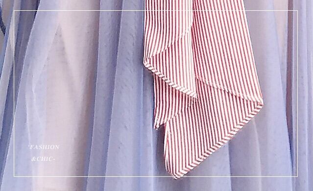 カラーはパステルトーンのスカートに合わせたストライプ柄のトップス。