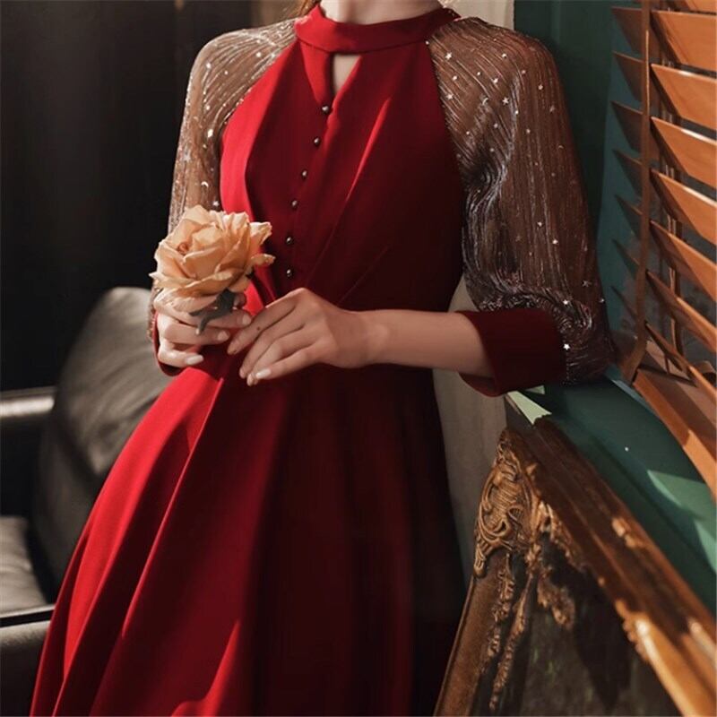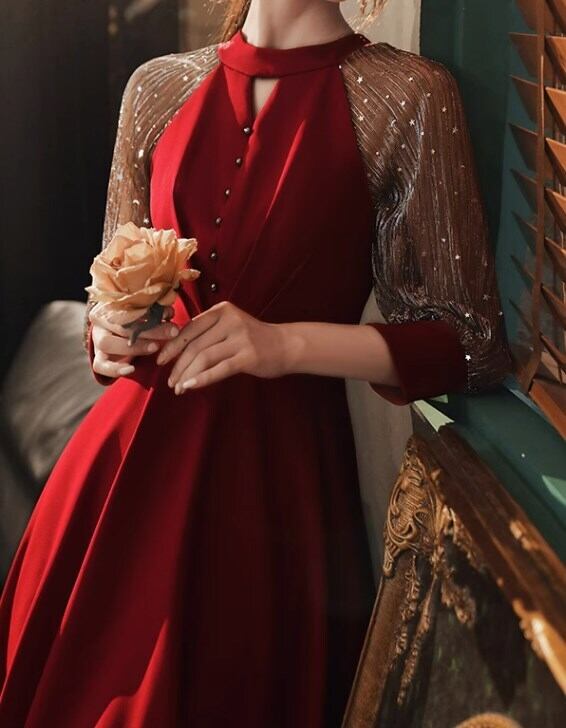 ドレス ミモレ丈ドレス ミモレ ミモレ丈 袖あり 長袖 ハイウエスト ビーズ かわいい 大人可愛い きれいめ シンプル 大人 上品 おしゃれ お洒落 大人可愛い 大人女子 ラブリー キュート ガーリー 個性的 クール セクシー エレガント 華やか 上品 お姫様 お嬢様 清楚 無地 20代 30代 レディース お出かけ パーティー イベント 韓国 韓国系 オルチャン ファッション コーデ 美脚 脚長 春 秋 二次会 2次会 お呼ばれ パーティ S M L XL 2XL 赤