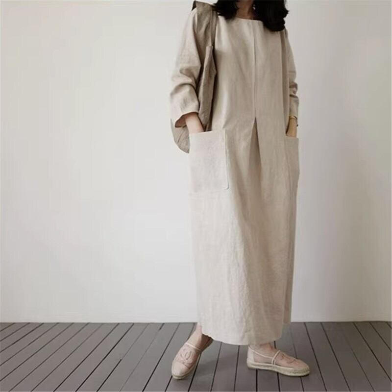 ワンピース ミモレ ミモレ丈 袖あり 5分袖 五分袖 ラウンドネック ゆったりウエスト かわいい 大人可愛い きれいめ シンプル 大人 上品 おしゃれ お洒落 大人可愛い 大人女子 ラブリー キュート ガーリー 個性的 クール セクシー とろみ感 エレガント 華やか 上品 無地 10代 20代 30代 レディース ママ お出かけ 女子会 お泊まり 休日 韓国 韓国系 オルチャン ファッション 部屋着 コーデ ゆる ゆったり 春 秋 フリーサイズ 白 黒 オレンジ