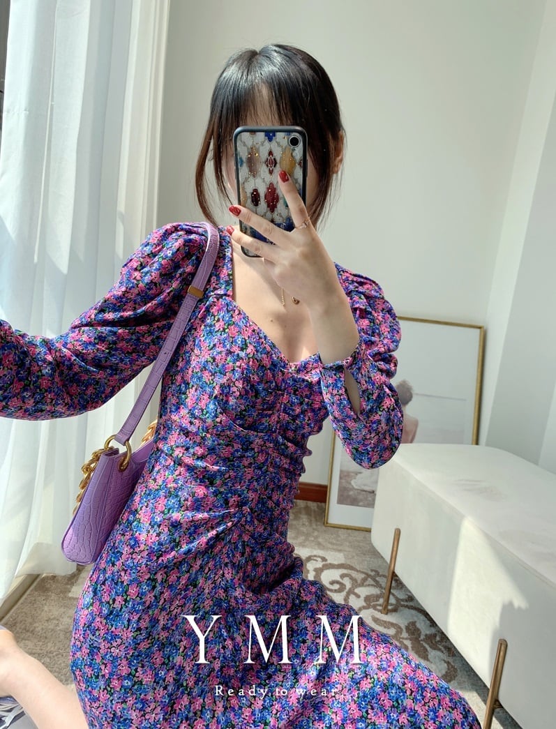 ワンピース ワンピドレス 膝下 ミモレ ミモレ丈 長袖 パフスリーブ Vネック スクエアネック フレア スリム タイト 細身 スリット 薄手 かわいい 大人可愛い シンプル カジュアル 大人 上品 おしゃれ お洒落 レトロ キュート ガーリー セクシー 無地 春 夏 秋 冬 オールシーズン シーズンレス 10代 20代 30代 40代 50代 60代 レディース 学生 通学 デート お出かけ 公園デビュー 女子会 休日 運動 アウトドア 旅行 ショッピング 普段使い 重ね着 S M ジャスト パープル
