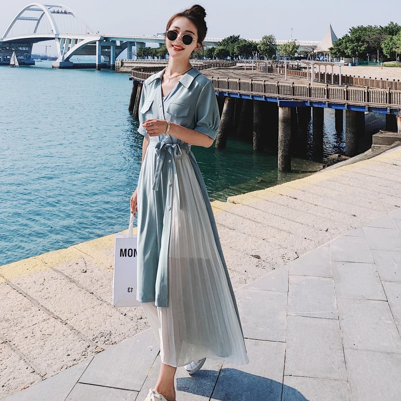 ワンピース フレアワンピース ワンピドレス ミモレ ミモレ丈 不規則丈 袖あり 半袖 Vネック カシュクール 襟付き ポロカラー フレア Aライン 切り替えデザイン ドッキング リボン ウエストリボン ポケット ハイウエスト 薄手 かわいい 大人可愛い きれいめ カジュアル 大人 上品 おしゃれ お洒落 大人女子 ラブリー キュート ガーリー セクシー エレガント とろみ感 無地 夏 10代 20代 レディース 女性用 デート お出かけ 女子会 体系カバー 美脚 脚長 サイズ S M L XL ブルー